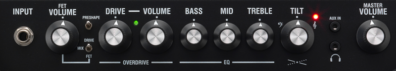 Dos canales conmutables: canal FET limpio y canal Drive con controles independientes de Drive y Volumen para lograr la cantidad exacta de saturación tipo válvula.
