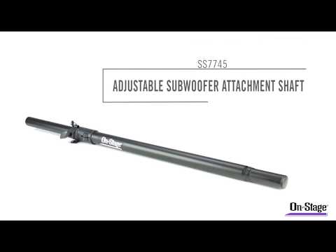 El On-Stage SS7745 es un tubo de extensión ajustable diseñado para montar un altavoz sobre un subwoofer de manera segura, estable y profesional, eliminando la necesidad de un soporte de piso adicional.