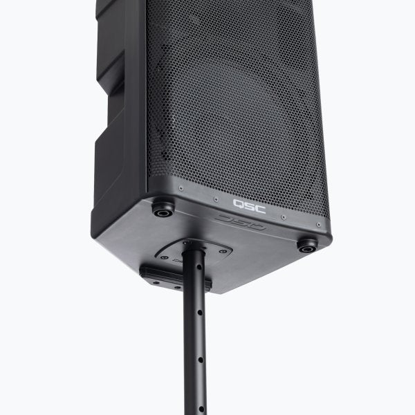 Su base cuenta con un conector roscado M20 desmontable, que permite fijarlo directamente a subwoofers compatibles, reduciendo el movimiento y el balanceo del sistema para un rendimiento más sólido y preciso.