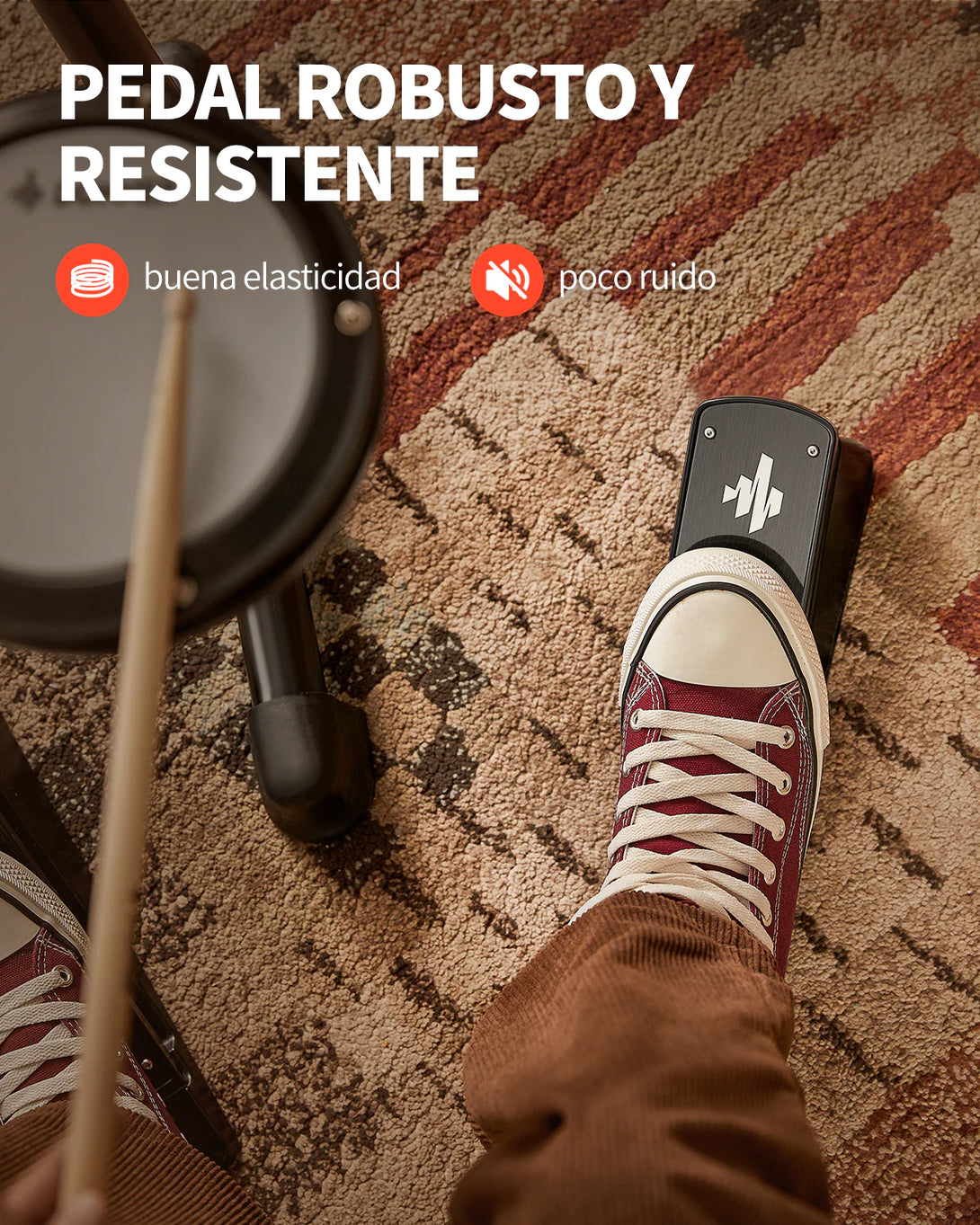 La DED-80MAX incorpora un sistema de detección mejorado que registra cada golpe con detalle, desde matices suaves hasta acentos fuertes. Sus parches de malla brindan un rebote uniforme y silencioso, ideal para practicar en ambientes compartidos.