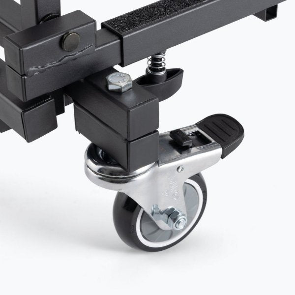 Su estructura ajustable permite expandir la base para cargas grandes o reducirla para pasar por espacios estrechos, adaptándose a cualquier situación. Con una capacidad de carga de hasta 330 lb (150 kg), este carro reduce el esfuerzo durante el montaje y desmontaje, garantizando estabilidad y eficiencia.