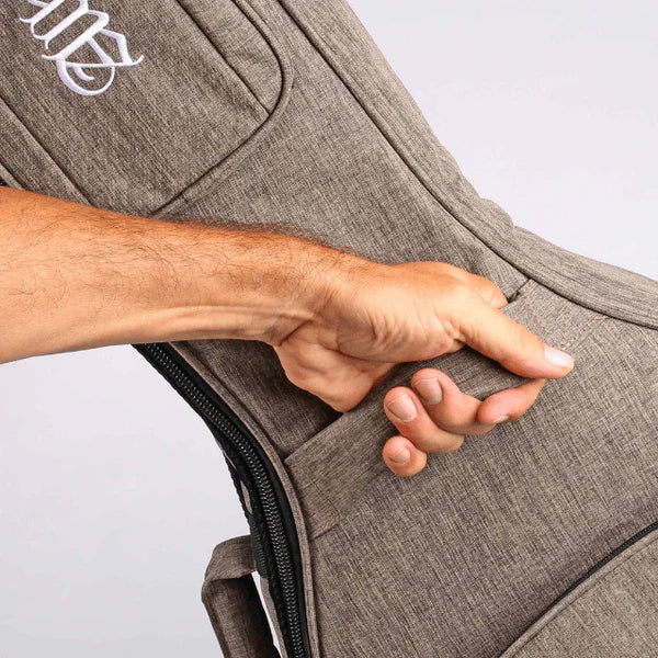 La funda acolchada Alhambra en color gris está diseñada para guitarristas que buscan seguridad, comodidad y estilo en un solo accesorio. Con un acolchado de 25 mm de espesor, ofrece una protección superior frente a golpes y desplazamientos, ideal tanto para el uso diario como para transporte frecuente.