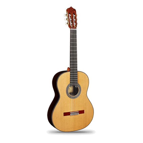La Alhambra con tapa de Cedro Macizo y Palosanto de India Macizo es una guitarra diseñada para intérpretes que buscan un instrumento con carácter, proyección y una respuesta tonal excepcional. Cada detalle ha sido construido con precisión, utilizando maderas seleccionadas y técnicas tradicionales que elevan su nivel a una categoría profesional.