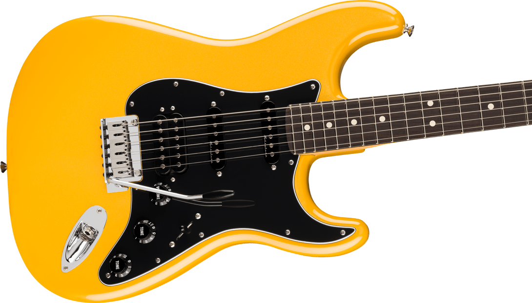 La Fender Stratocaster® HSS Player II Modified en acabado Amarillo Soleado es una guitarra que fusiona el estilo clásico de Fender con características modernas diseñadas para guitarristas que buscan versatilidad, potencia y estabilidad.