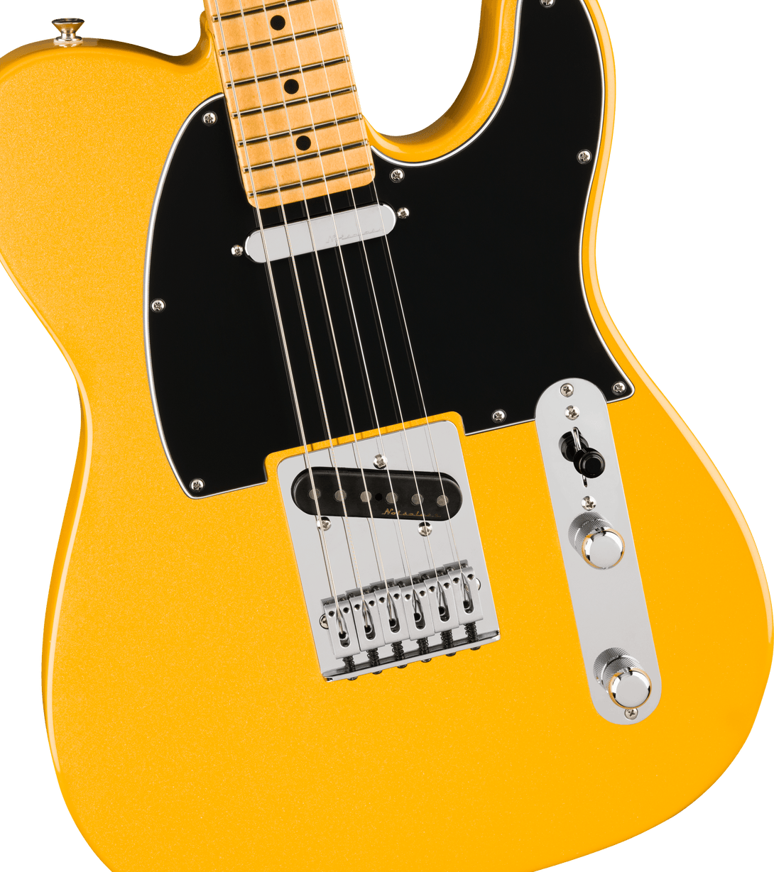 Su mástil de perfil Modern “C” con acabado satinado y diapasón de 9,5” ofrece una ejecución ágil y fluida. Con 22 trastes jumbo medianos y bordes redondeados, asegura comodidad tanto en acordes como en solos. El cuerpo de aliso conserva el punch clásico de Fender, mientras que las pastillas Tele® Player II Noiseless entregan el característico twang y ataque de la Telecaster, eliminando ruidos indeseados.