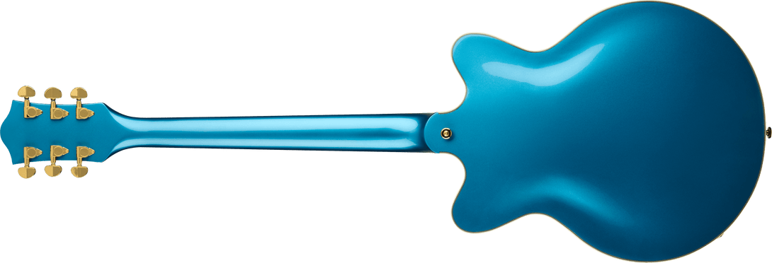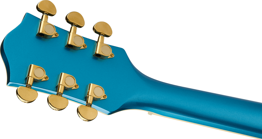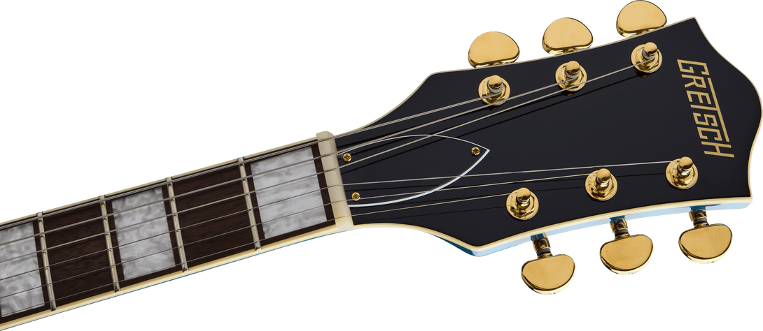 La Gretsch G2655TG Streamliner Center Block Jr. LTD combina la tradición icónica de Gretsch con prestaciones modernas que elevan el sonido, la estética y la experiencia de ejecución. Su acabado Riviera Blue, junto al hardware dorado, los controles metálicos G-Arrow y los inlays Pearloid Big Block, le otorgan una apariencia premium que destaca de inmediato en cualquier escenario o colección.