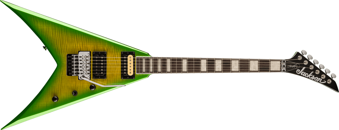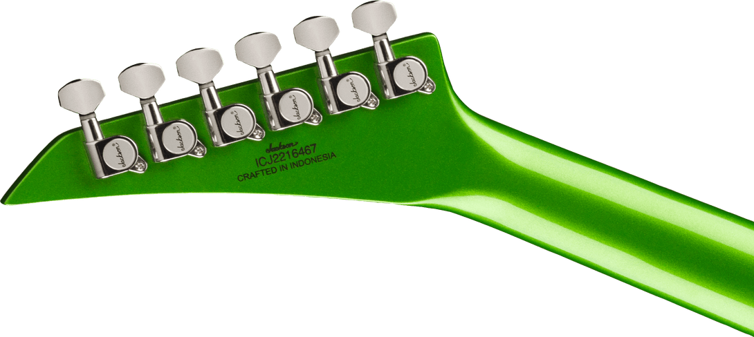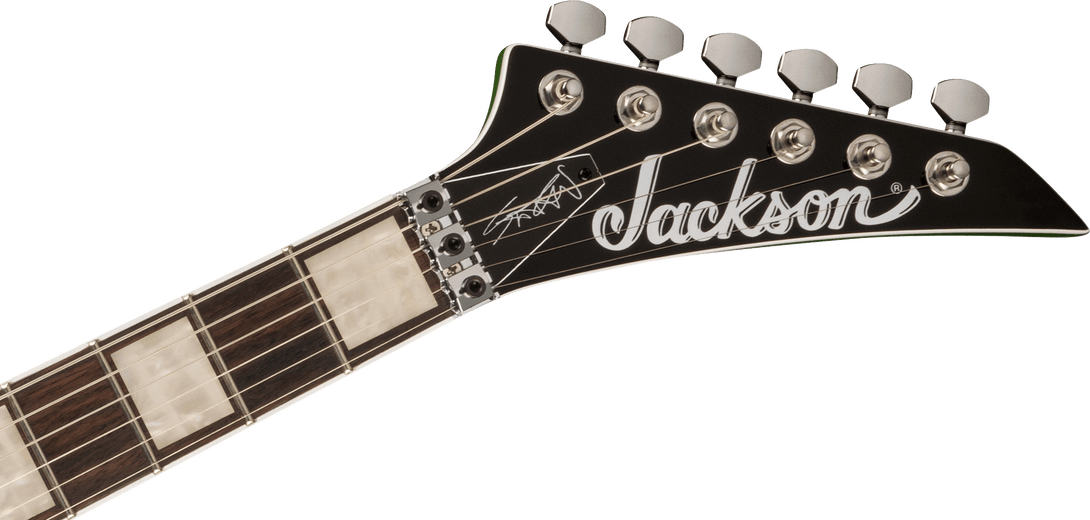 Equipada con un par de humbuckers Jackson de alto rendimiento, esta KVX “Baldini” entrega claridad, ataque y potencia en escenarios de alta ganancia. Además, su puente Floyd Rose® Special de doble bloqueo (recesado) permite un uso extremo de la palanca manteniendo la afinación firme en cualquier situación.