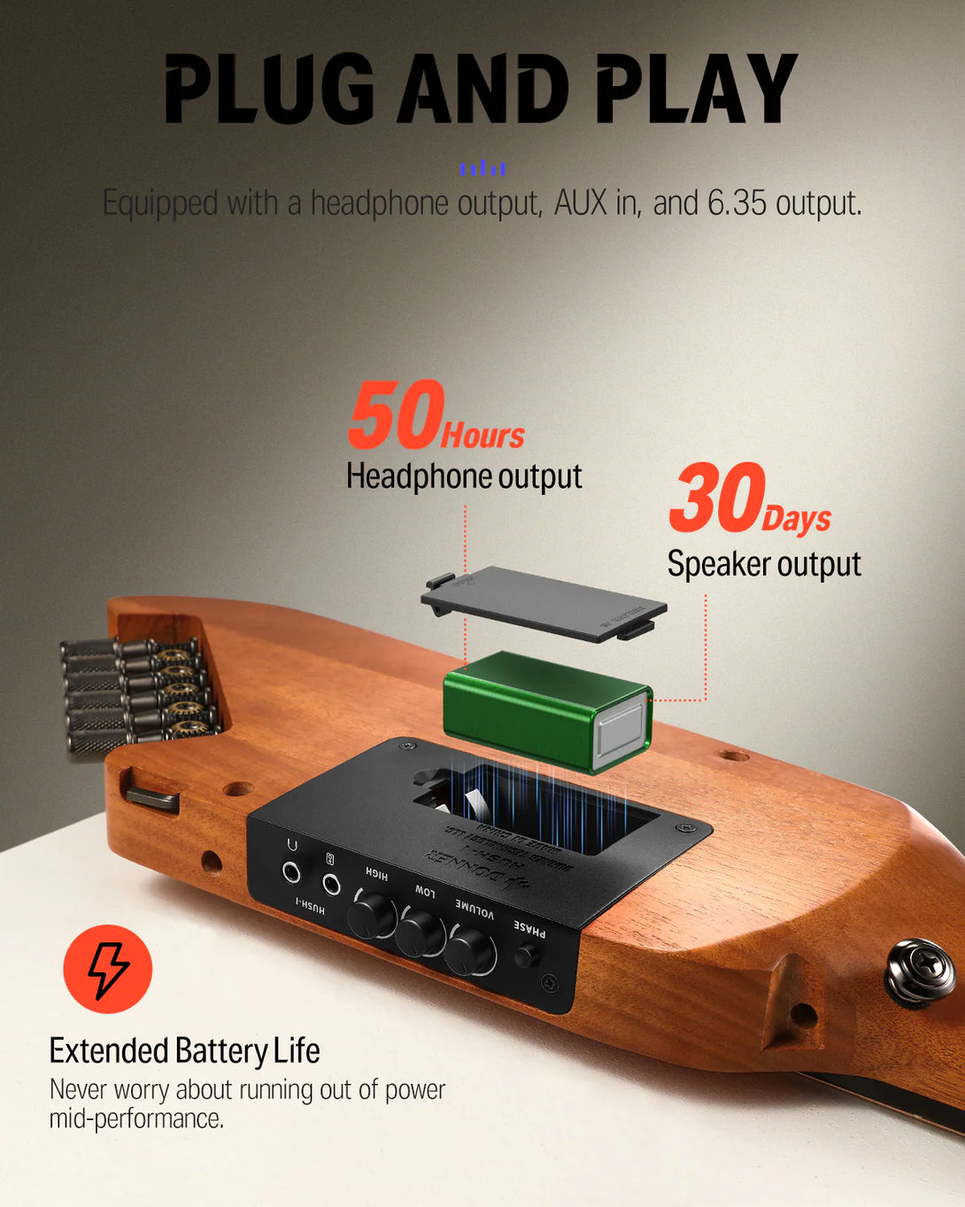 Preamp integrado: Phase, Volumen, EQ de 2 bandas