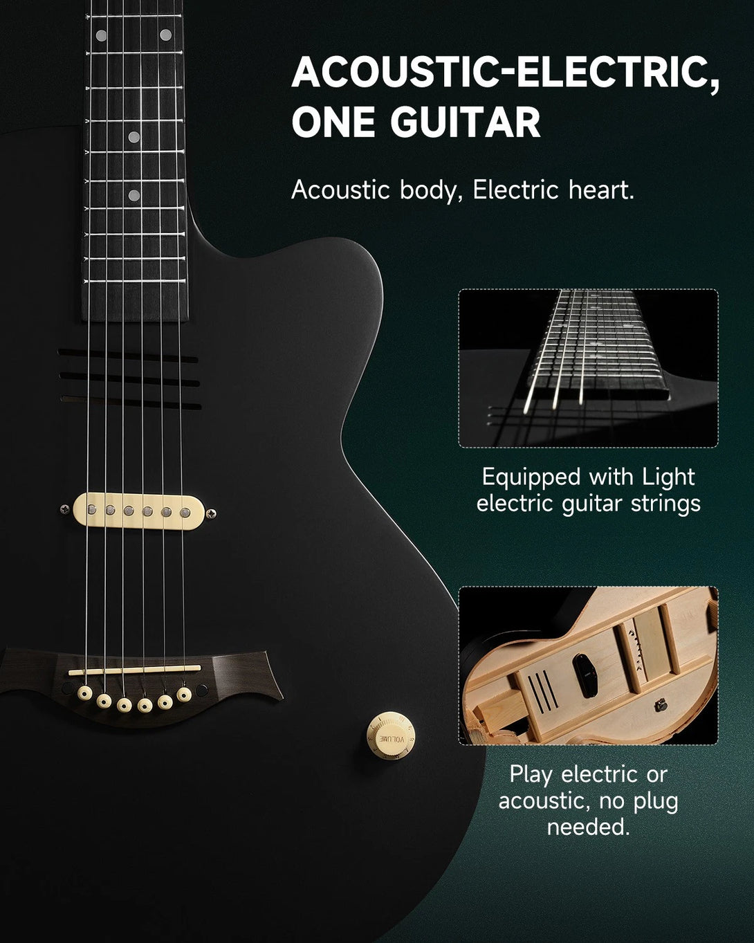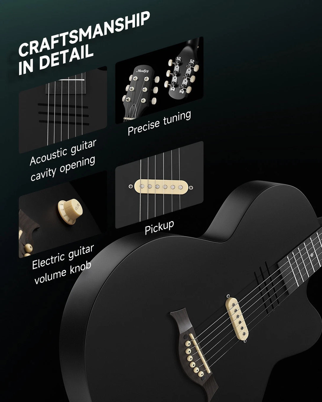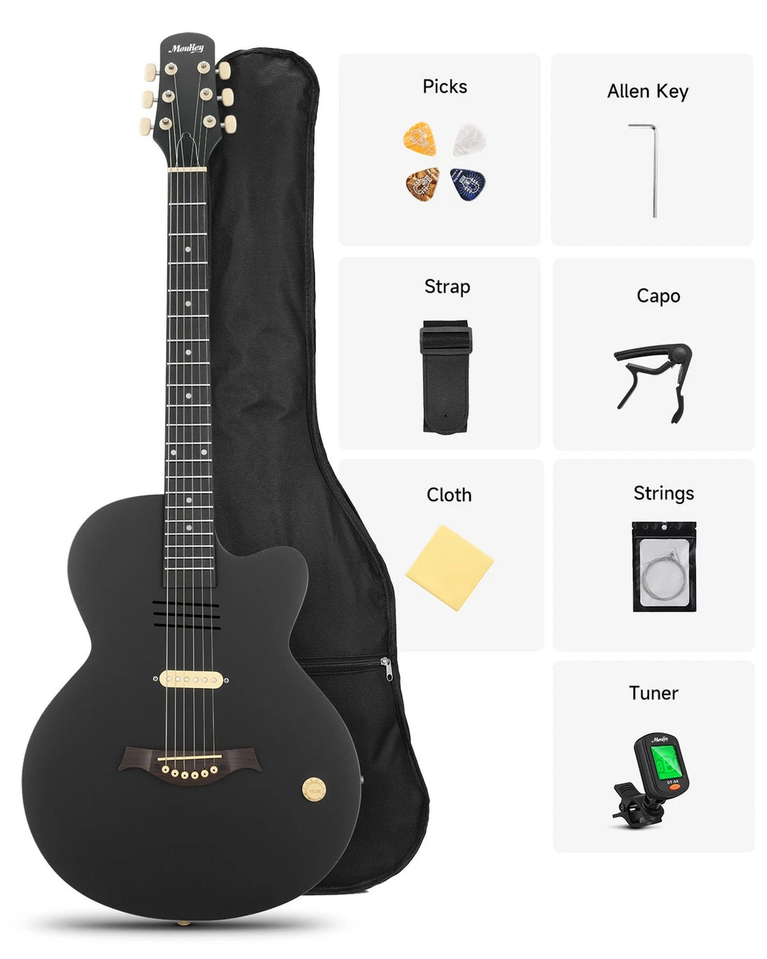 La Moukey MK3064 combina modos acústico y eléctrico, permitiéndote tocar desenchufado o conectarla directamente a un amplificador gracias a su sistema pasivo plug-and-play. Ligera, cómoda y con un diseño cutaway, ofrece excelente jugabilidad y sonido claro, ideal para jóvenes músicos, estudiantes y principiantes que buscan versatilidad y portabilidad.