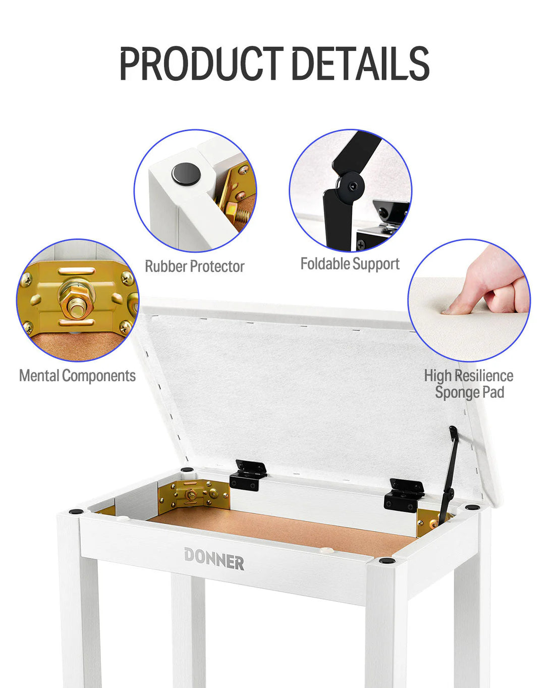 La Donner DKB-10 es una silla para piano diseñada para ofrecer comodidad, elegancia y practicidad. Su estructura resistente, su acabado refinado y su asiento acolchado la convierten en una excelente opción para acompañar pianos acústicos, pianos digitales o teclados en estudios, aulas o espacios de práctica en casa.