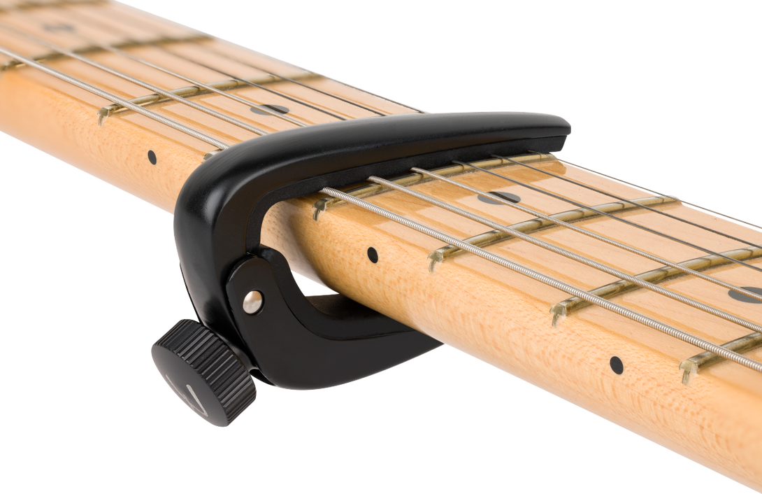 Su perilla micrométrica permite ajustar la tensión de forma exacta, manteniendo la entonación equilibrada y eliminando el molesto zumbido de los trastes. Además, cuenta con un acolchado de goma que protege el acabado de la guitarra y asegura un agarre firme, incluso en largas sesiones de práctica o presentaciones en vivo.